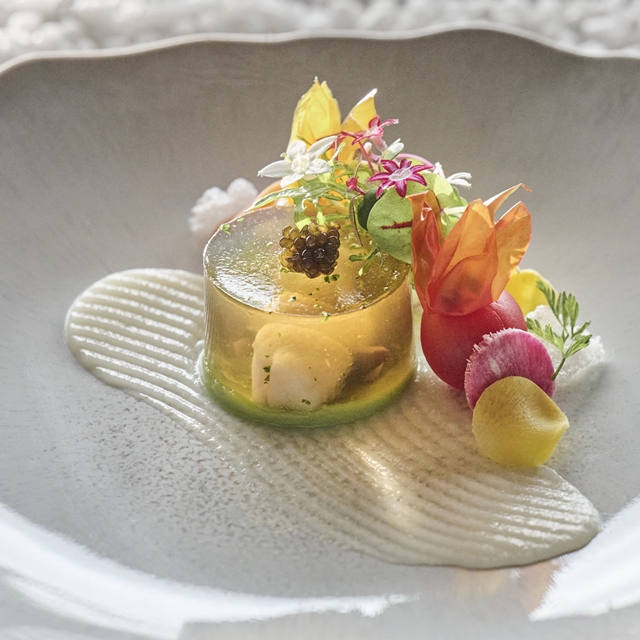 - 豊富な緑と新鮮な水、茨城県の豊かな自然で育まれる“常陸牛”をはじめ、厳選された産地直送の食材をふんだんに使い、季節に合わせた最高のアレンジでご提供致します。自然の恵みを主役にした、シェフこだわりの美食をぜひお愉しみください。