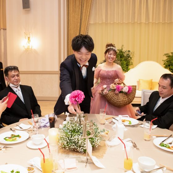 コロナウイルスで式を挙げられるか不安な中打ち合わせを進めていましたが、マスク着用や検温などの徹底した対策もあったので、安心して式をあげることができました。