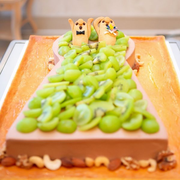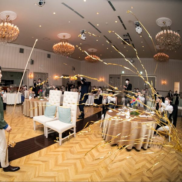 演出は、ゲストが参加できて楽しいと思えるように考えました。演出の自由度がとても高く、なんでも受け入れてくれました。スタッフさんも皆ノリノリで話を聞いてくださり、私たちもとても楽しく準備から本番まで行うことができました。ゲストからはこれまでに無い式で楽しかったという感想をたくさんいただきました。