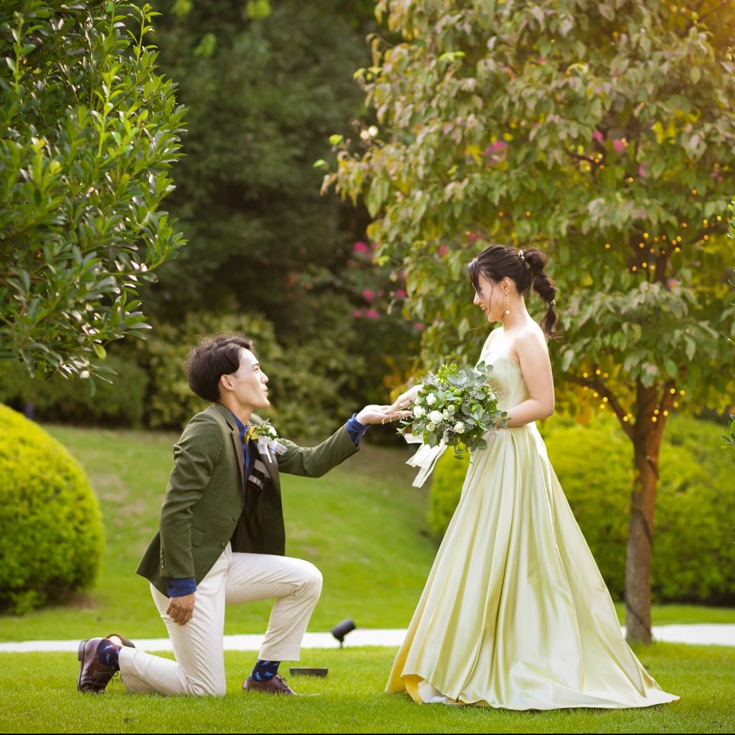 昼のガーデンは挙式で使用し、夜のガーデンは2次会で使用し、ゲストに素晴らしいガーデンを堪能してもらう計画をしていました。コロナのため当日は2次会は行いませんでしたが、ガーデン挙式は、ゲストから「きれいだった。」「雰囲気が二人に合っていた。」など好評でした。