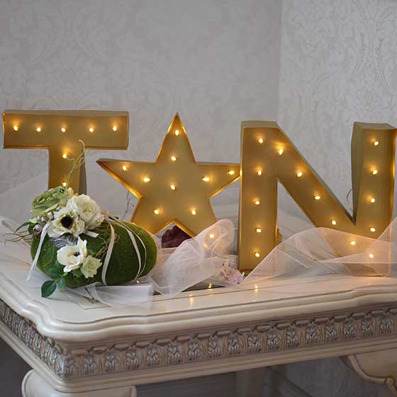 私たちの結婚式は七夕だったので、ゲストテーブルの中央には木を置いて、枝にゲスト一人一人へのプチレターを下げ、ゲストに取ってもらうようにしたのもこだわりの一つです。星型の短冊にゲストのお願いごとを書いてもらい、マナーハウスに飾りました。2人がいつまでも幸せでいられますようにと、私たちの幸せを願ってくださるゲストの方もいて本当に嬉しかったです。