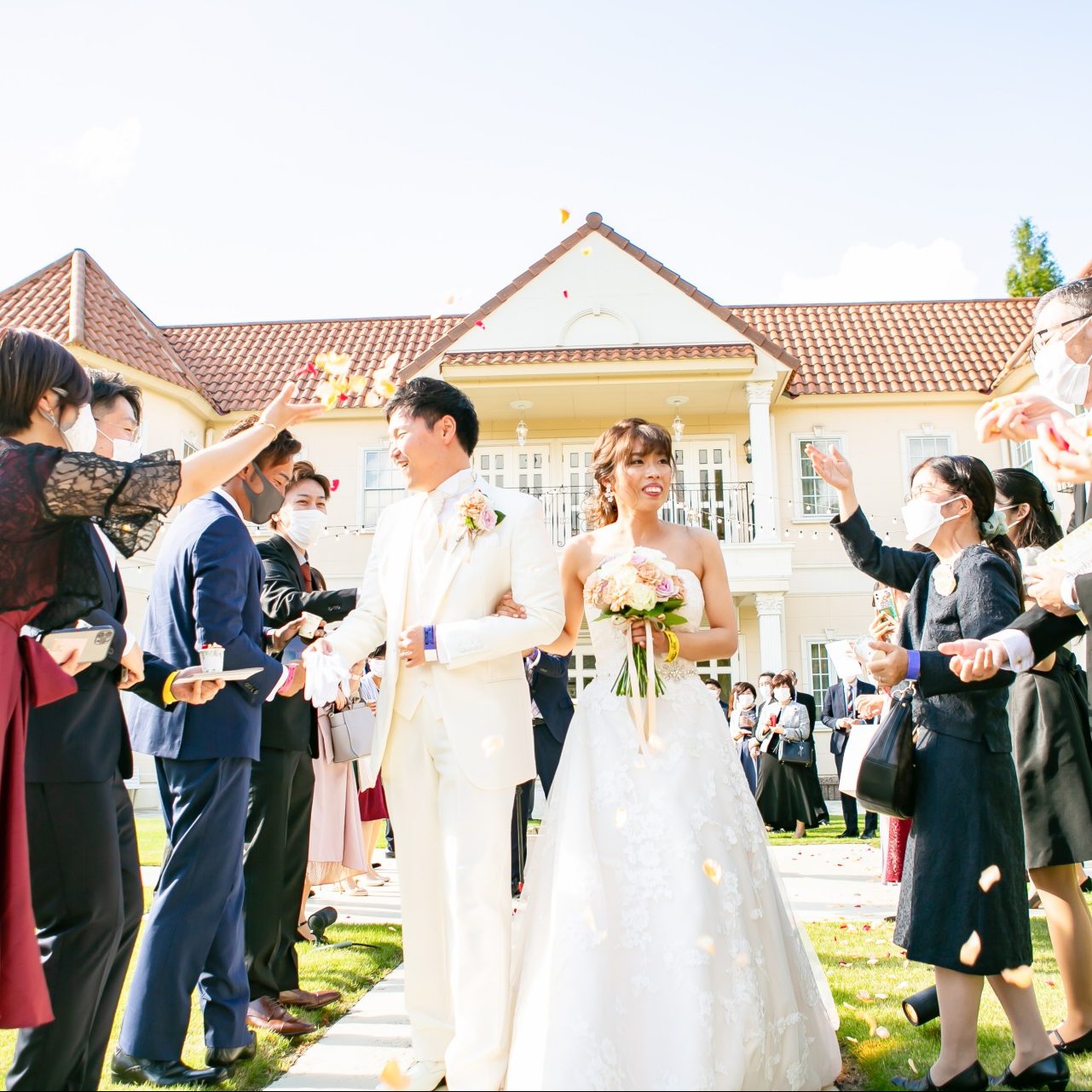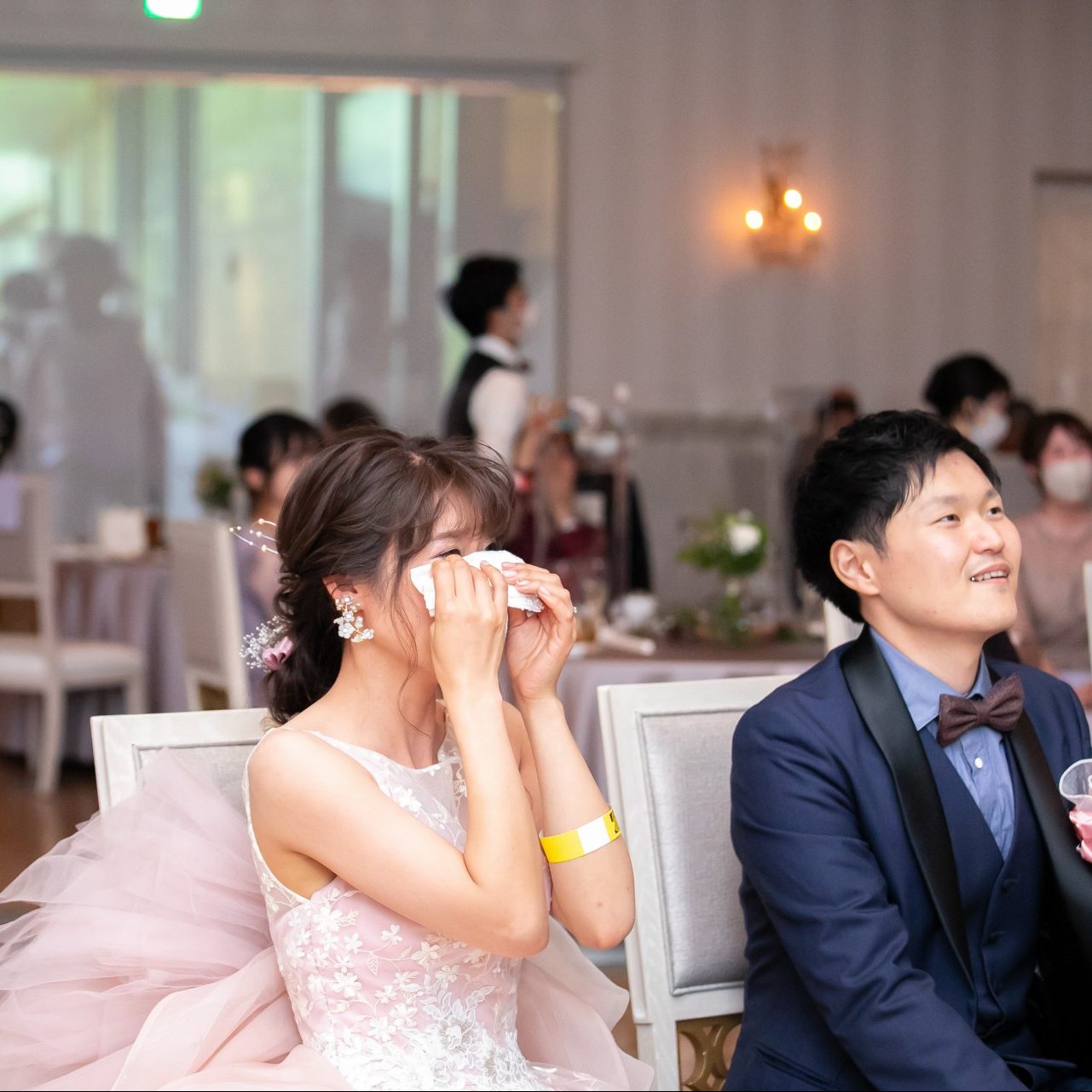 私たちはコロナの影響で結婚式を1年延期しました。また、ギリギリまで緊急事態宣言だったこともあり、当日まで本当に結婚式を挙げられるかとても不安でした。しかし、スタッフの方々の協力もあり、消毒や各テーブルにパーテーションを設置するなど、感染対策に十分配慮したことで無事当日を迎えることができました。当日は始まってみると本当にあっという間で、多くのスタッフの皆さまが近くでサポートしてくださり、なんの不安もなく楽しい時間を過ごすことができました。とても快晴で緑も映え、大好きな人たちに囲まれ、夢のような時間を過ごすことができました。このような状況下でも「結婚式をやって良かった!」と心から思います。とても素敵な式場で出会えた全てのスタッフの方々に感謝の気持ちでいっぱいです。ありがとうございました。