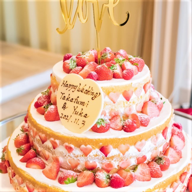 どうしたら多くの人に楽しんでもらえるかという軸で進行等を考えていると、どんどんアイディアが浮かんできました。コロナの影響でゲストとの距離が遠いままというのも寂しいと思ったので、多くのゲストと関われるように工夫しました。ウェルカムスペースには友人たちとの懐かしい写真を飾ったり、親戚の子にリングボーイをお願いする。ブーケトスではなく、お菓子をたくさん用意してお菓子まきをする。友人代表スピーチではなく、より多くのゲストにインタビューやメッセージをもらう。全員参加のクイズを行う・・・オリジナルの楽しい式が出来ました。お料理についても2人で旅行に出かけたときの思い出のメニューを入れてもらうなどこだわりました。