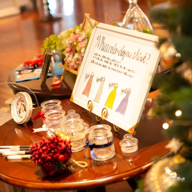 私達の為に参列してくれる大切な人達に少しでも楽しんでもらい、感謝の気持ちを伝えたく、一つ一つの準備に時間と気持ちを込めて進めていきました。