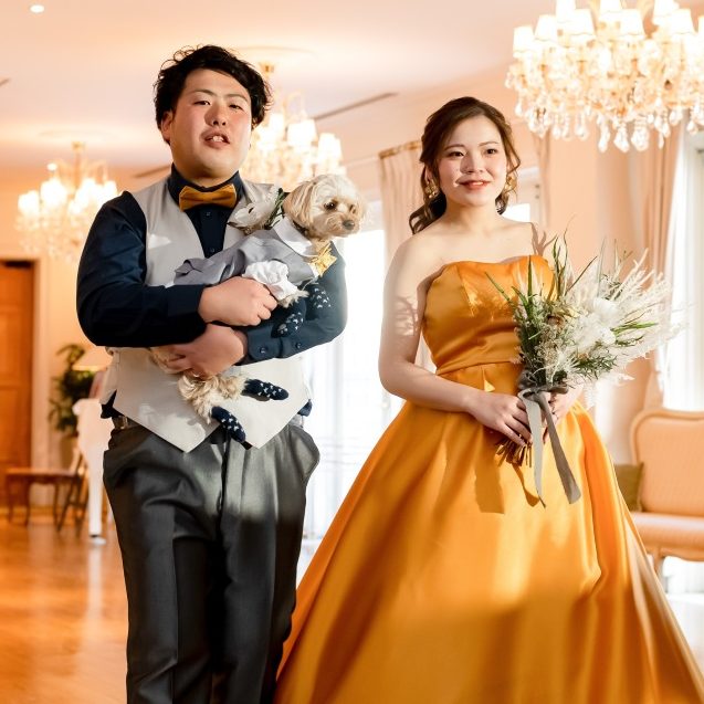コロナ禍の結婚だった為、結婚式をすることをすごく悩んでました。今回、飼っている犬にどうしてもリングドックをやって貰いたいと思い、落ち着いて来た時期に決意致しました。