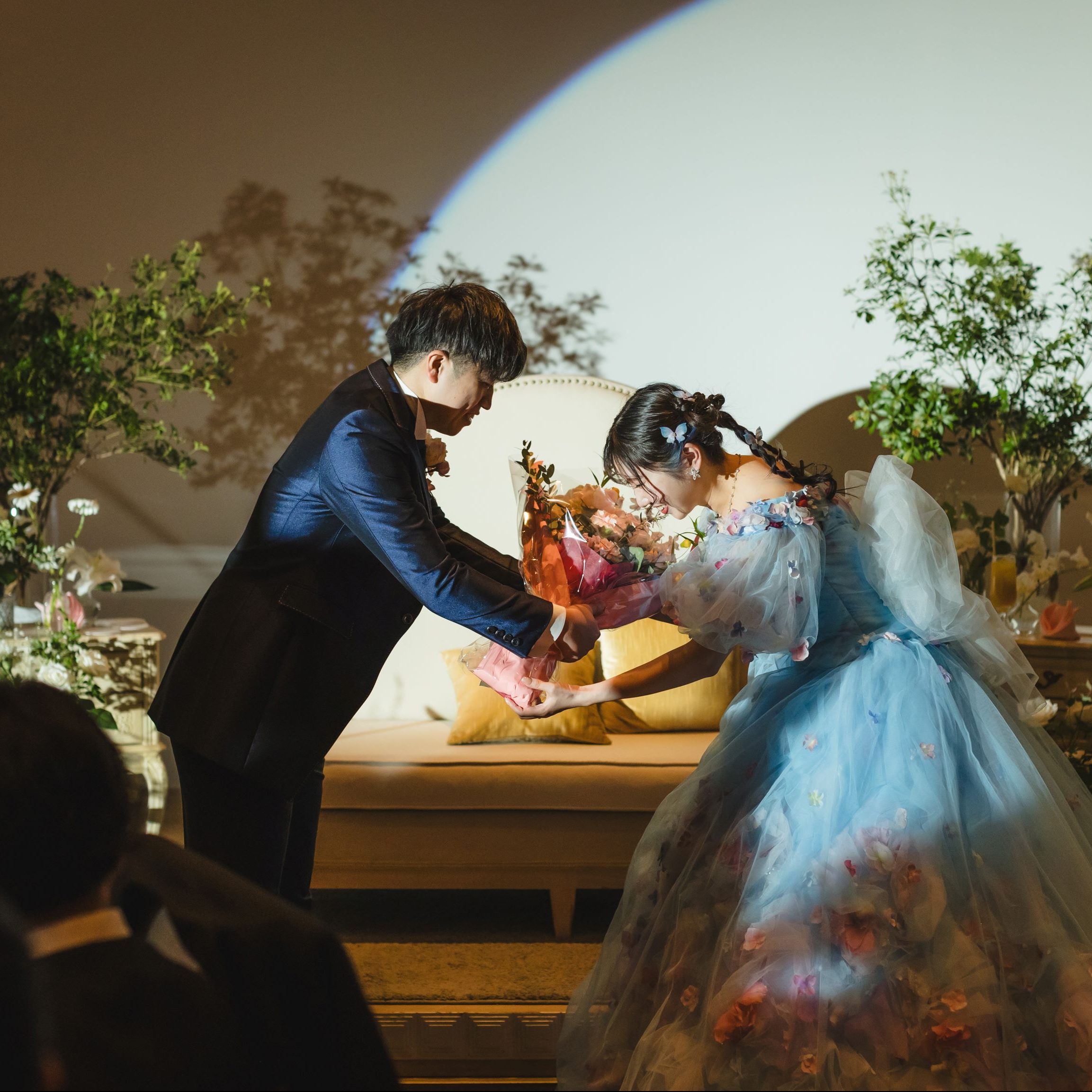 私たちのやりたいを詰め込んだ式だったので、何かしらうまくいかない部分はあるだろうなと考えていたけれど、全て完璧に演出をやっていただけて安心して式を進めることが出来ました。