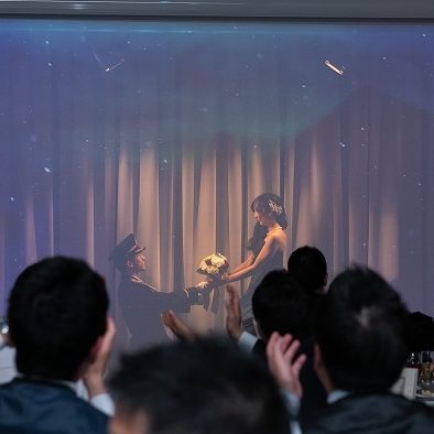 式場見学の際にも、会場全体を覆うプロジェクトマッピングやサプライズ登場シーンに心を奪われていたので、ぜひ自分たちの式においても存分に活用したいと考えていました。
