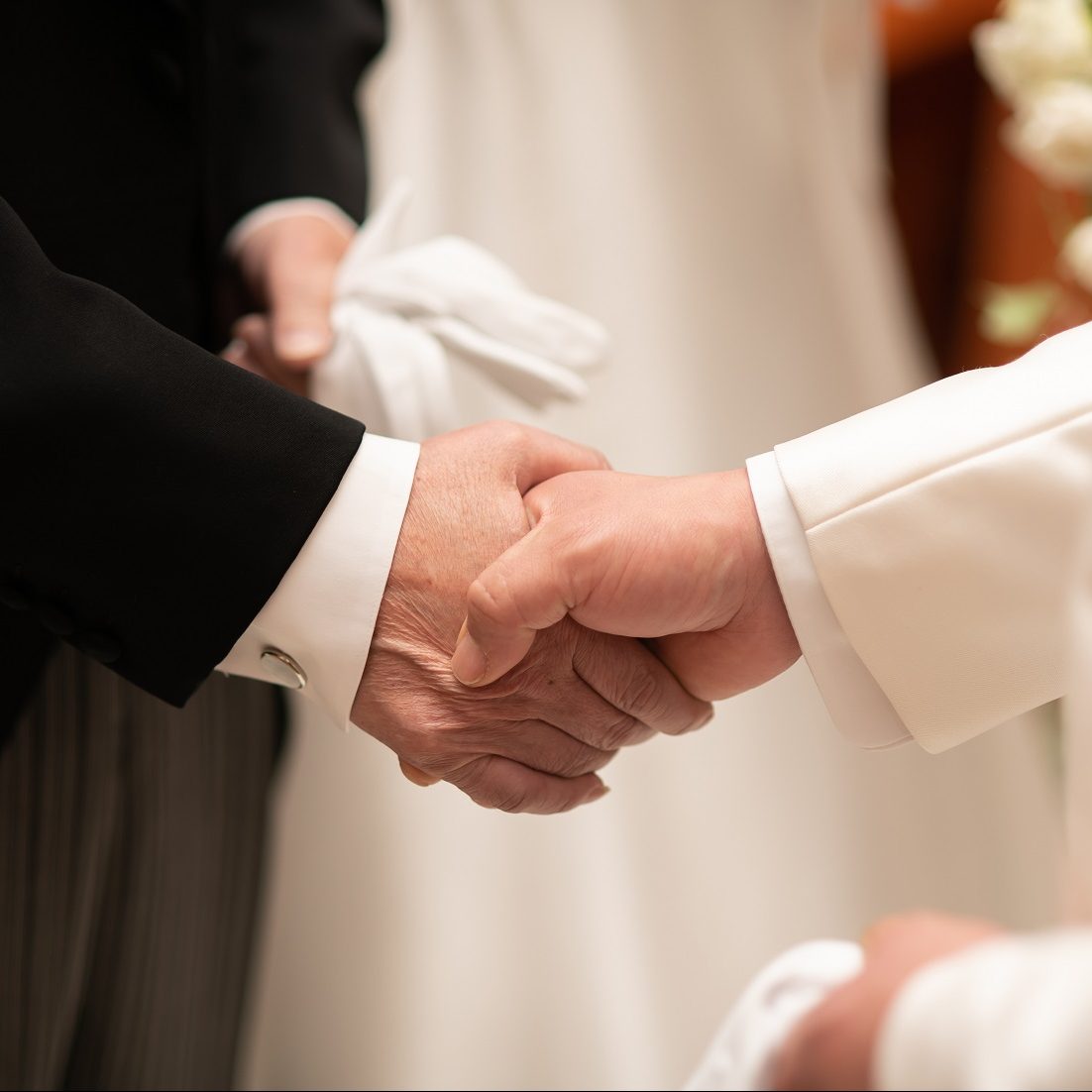 ドレス、タキシード、会場の飾り付け、招待状等の色合いには特にこだわりました。