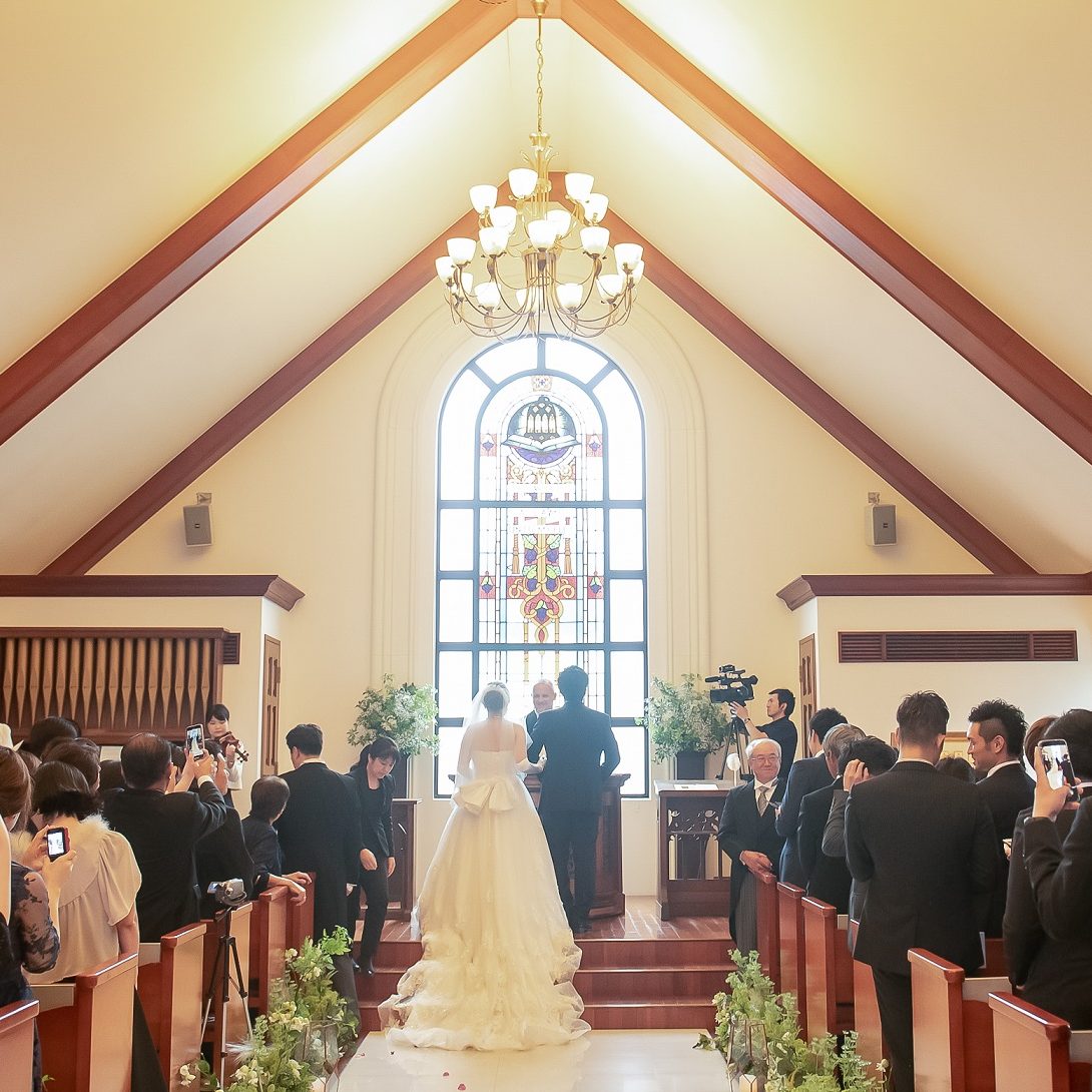 ステンドグラスが輝き、窓がある開放感と木の温もりあるチャペルが、見学した際夫がとても気に入っていた事をよく覚えています。