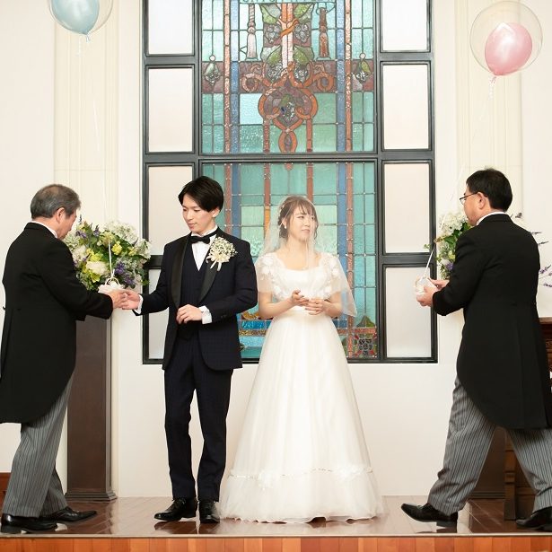 全体的に感動する式より、ゲストのみんなと楽しみたい!という気持ちが強かったので 挙式では人前式を選び、ゲスト全員の想いを繋げるバルーンリングリレーをしたり、披露宴では歓談の時間を長く取ってもらったりしました。