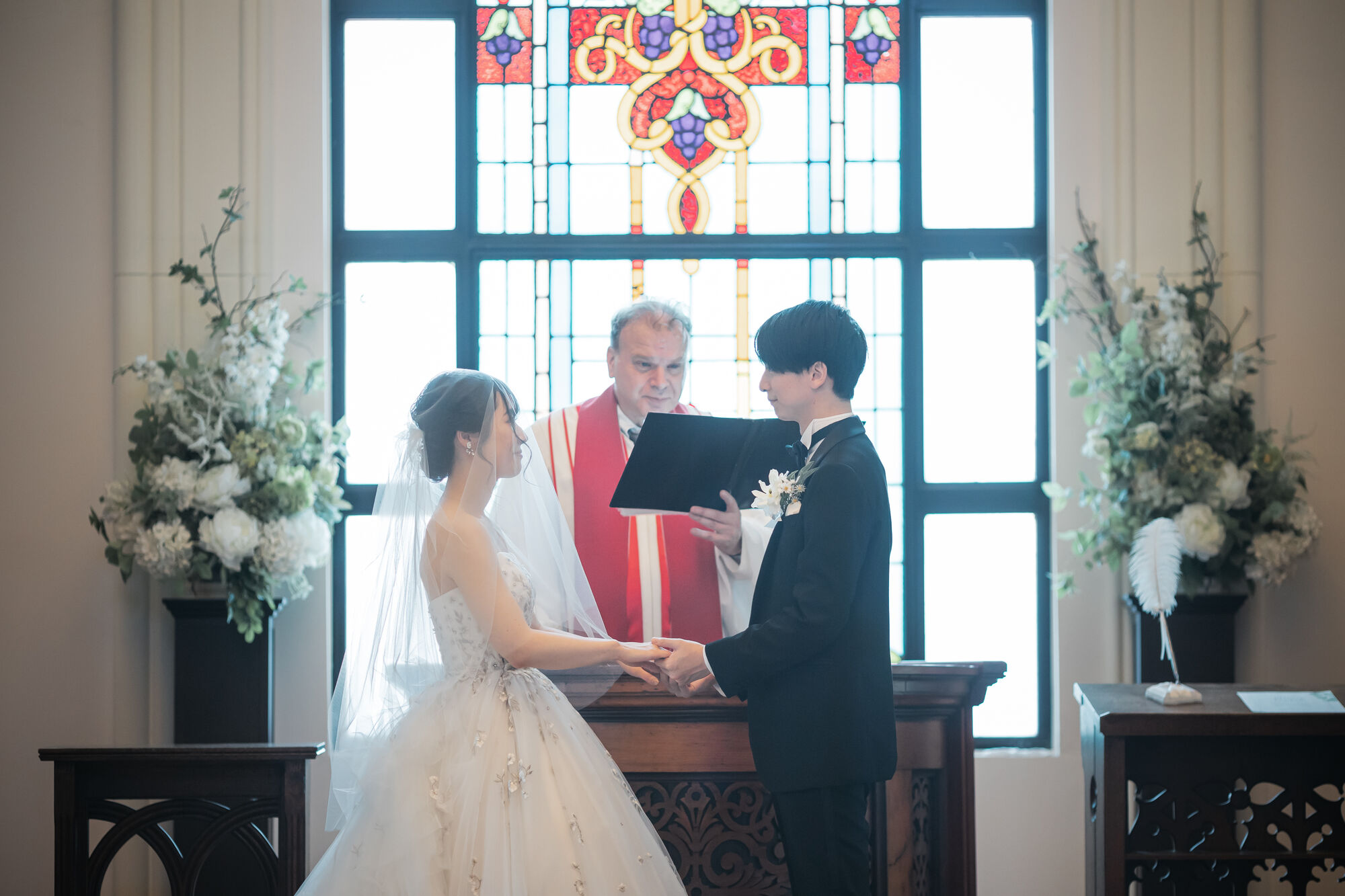 おふたりは厳かな雰囲気の中でキリスト教式を迎えられましたが、おふたりの表情には次第に穏やかな笑顔が広がり、緊張よりも喜びが感じられる時間となりました。