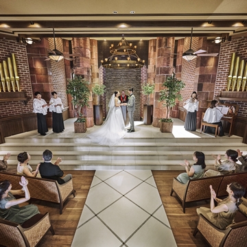 3万個のレンガを一つひとつ積み上げて造られたチャペル。