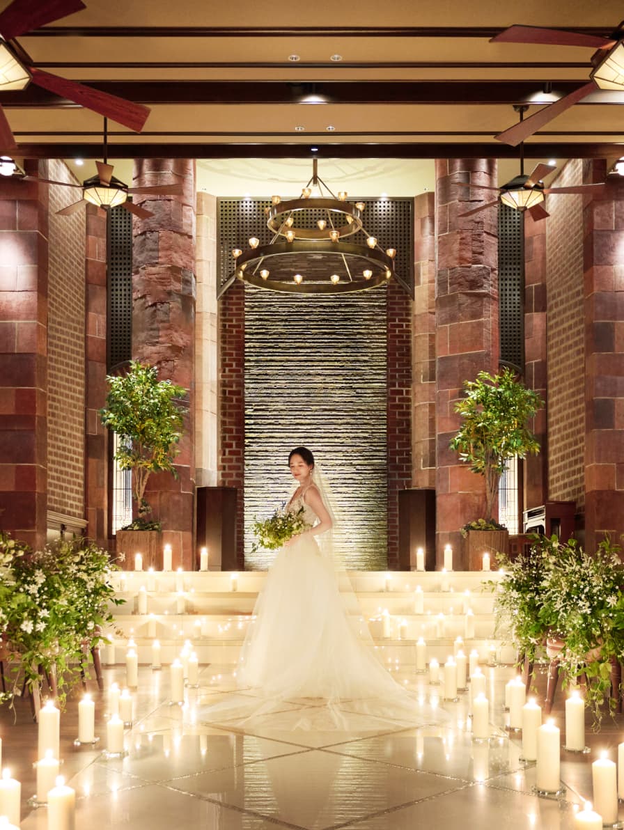 3万個のレンガを一つひとつ積み上げて造られたチャペル。 新潟駅から徒歩10分の“FORTUNE IN THE TERRACE(フォーチュン イン ザ テラス)”は洗練されたバンケットをワンフロア貸切りにして、 あたたかいおもてなしを叶えていただけるウエディングステージです。