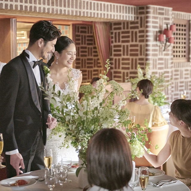陽光が降り注ぐレンガ造りの「アヴァンザール」は、少人数でのパーティーに最適なアットホームな雰囲気の空間です。大切なゲストの皆さまと、肩肘張らないおふたりらしいスタイルでゆったりとお愉しみいただけます。年間3700組以上の挙式を手がけるディアーズ・ウエディングによる充実のサービスで、心からご満足いただけるパーティーを形にします。