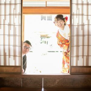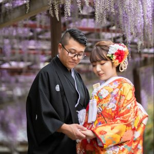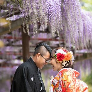 北方文化博物館での藤の花とお撮りしたおふたりの素敵な笑顔を