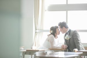 おふたりの思い出の教室で神秘的に