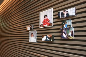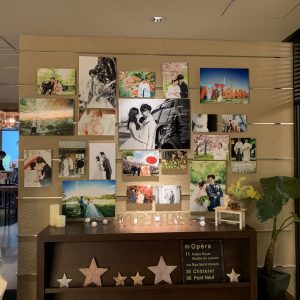 ラウンジをフォトパネルでいっぱいにし、