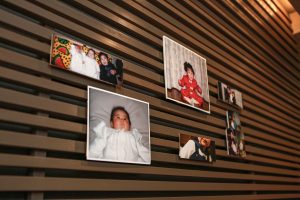 チャペルまでの道を小さいころのお写真でいっぱいにし