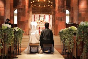 ウエディングドレスを着て行うお式や和装を着て行う神前式も執り行うことができます。