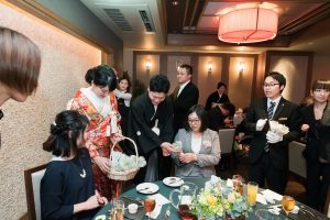 プレゼントを渡しながら1人1人に来てくれてありがとうと直接伝えることでゲストの皆様にも