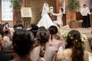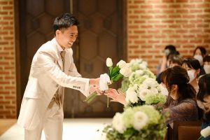 また、新郎入場時はキリスト式では牧師と入場しますが、人前式ではオリジナルな進行も可能です。
