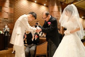 今までの人生を振り返り、感謝の気持ちを心に持ちながら新郎様のもとへ歩み寄ります