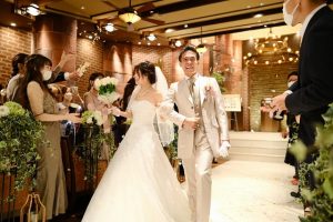 一人一人から祝福のお言葉をいただき、距離が近いからこそなんだか照れてしまったり、空間にいる皆様の「笑顔」を感じられる新郎入場。