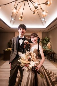 花嫁様のドレスカラーにも合わせやすく、上品な印象に。