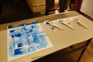 ゲスト皆様のフィンガースタンプ(指印)が木の葉っぱとなり