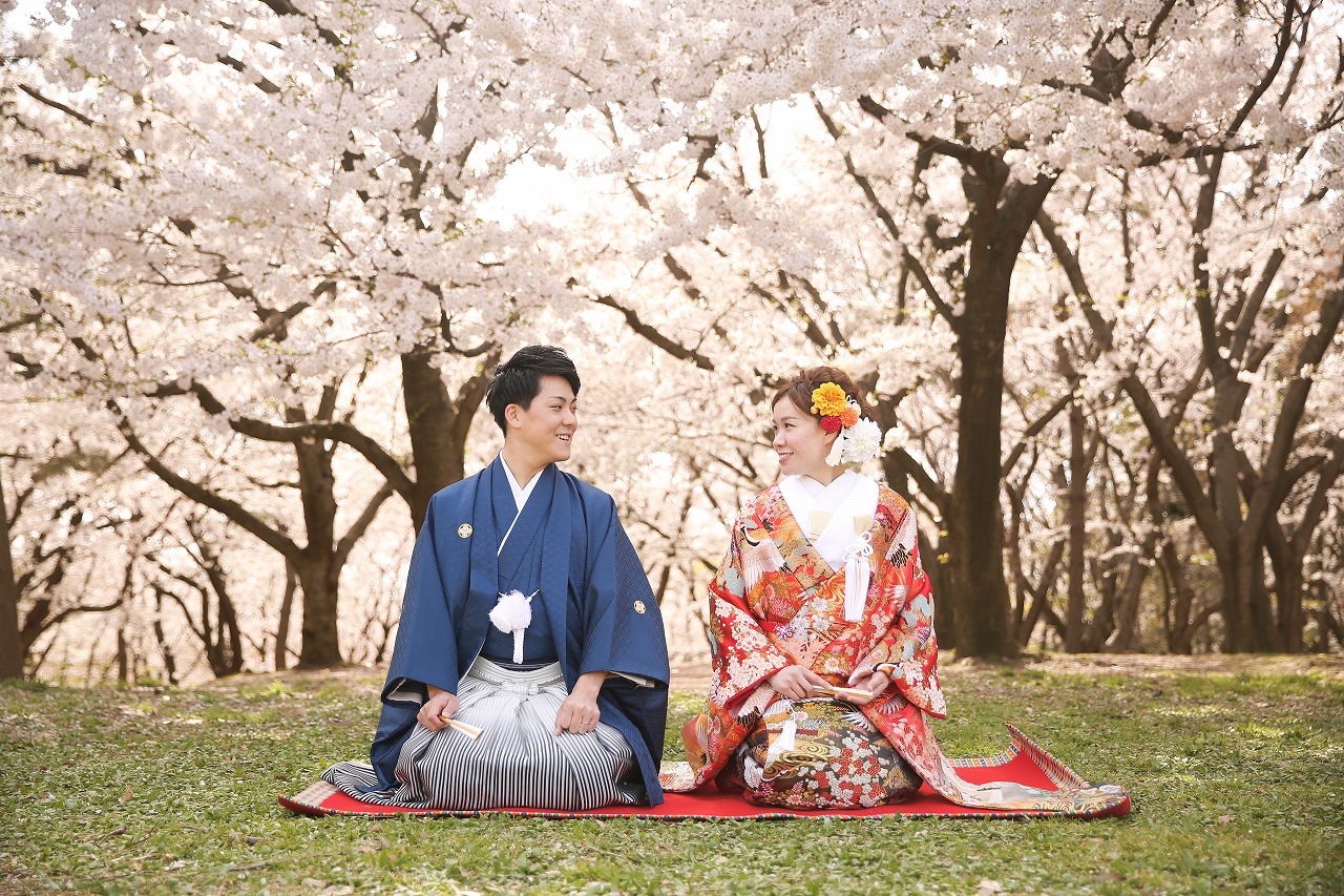 結婚式は7月。 前撮りは4月。 桜が綺麗な時に和装のお姿で! そ...