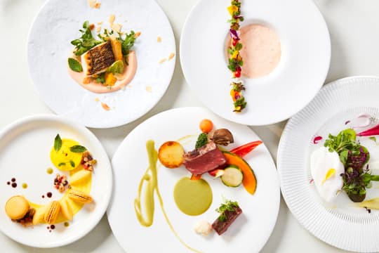 旬の食材を活かし、フレンチをベースに和の技と感性を取り入れた “フレンチジャポネ”です。 作品のように美しく盛り付けられ、見た目にも愉しんでいただける五感に響く一皿に。 ウエディングを知り尽くしたシェフが考案したシェフズメニューの他、おふたりのご希望や大切な方との想い出をお伺いしながら作るフルオーダースタイルにもご対応いたします。