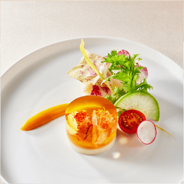 前菜からデザートまで、すべての一皿に意味がある。 おふたりの特別な一日を彩るために、コース全体がひとつの物語になるように構成しました。見た目・香り・味わい──そのすべてに、こだわりと想いを込めてお届けします。