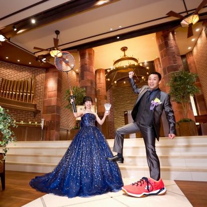 前撮りではインパクトのある写真が撮れましたし、当日はブーケトスならぬシャトルトスで