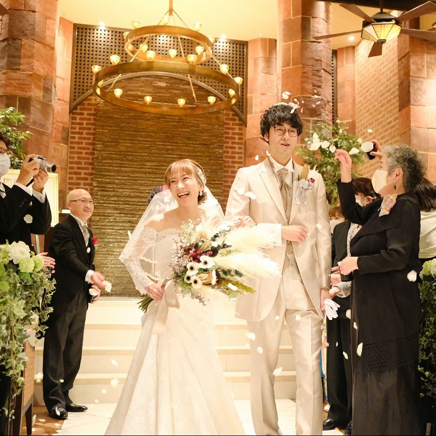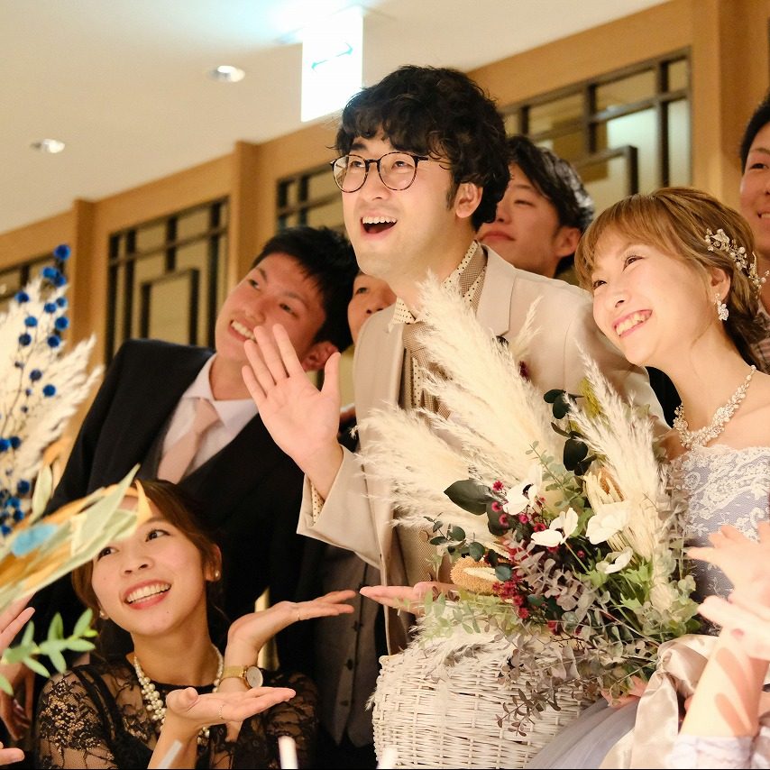 結婚式当日は、ゲストの皆様に楽しんでもらうことと、感謝の気持ちを伝えることを大切にしました。実際に結婚式をしてみて、私たちはこんなにたくさんの方から支えていただいているのだと、改めて気付かされました。式を終えて数日経っても、余韻に浸って心がふわふわしています(笑)本当に幸せな時間でした。