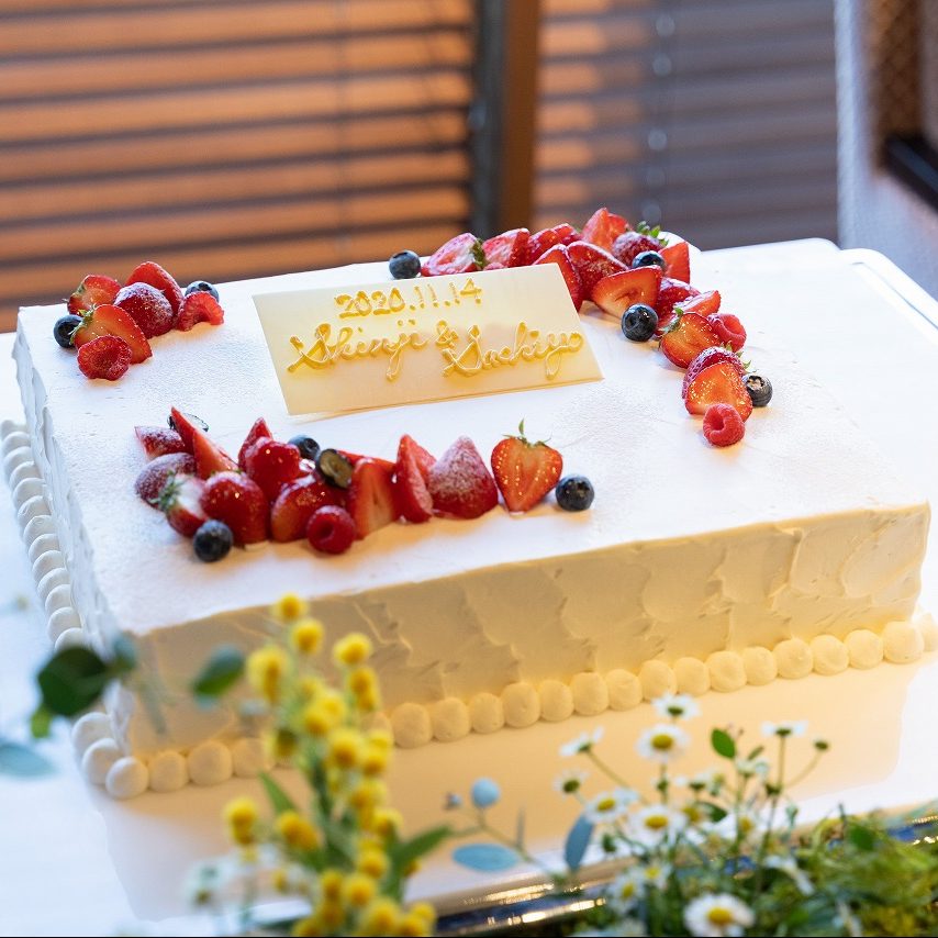 当日は予想していた以上の会場の装飾やブーケ、ケーキなど素敵な演出をして頂いてあっという間に終わってしまったなと思っています。