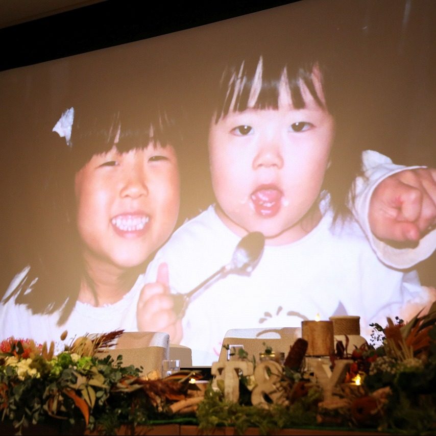 親族のみの結婚式だったので、アットホームな雰囲気になるかなとも思っていましたが、感謝を伝える場でもあるので、家族にはより感謝が伝わるように映像にはこだわりました。中座はそれぞれ兄弟と中座しましたが、お互いの幼少期の思い出の写真のスライドショーを流したり、両親への手紙のシーンでは、家族の思い出のスライドショーをバッグに読みました。