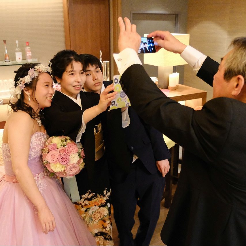 朱音「当日は、ヘアメイクやドレスの支度が整う頃には緊張はほとんどなくなり、楽しみだね、と二人とも笑顔でいっぱいでした。いつも表情が固い夫も、終始笑顔でした笑」