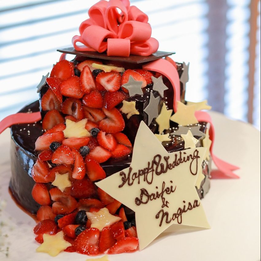 会場のテーマを星空にしたので、各テーブルに星を散りばめたり、メインテーブルにもプラネタリウムを置いてもらいました。ウェディングケーキにも星を散りばめたいと希望し、想像通りのケーキが出てきて驚きました!家族に感謝の気持ちを伝えたいと思っていましたが、手紙を読むのは苦手だったので、プロフィールムービーで感謝を伝える形にできたのは、とても良かったです。