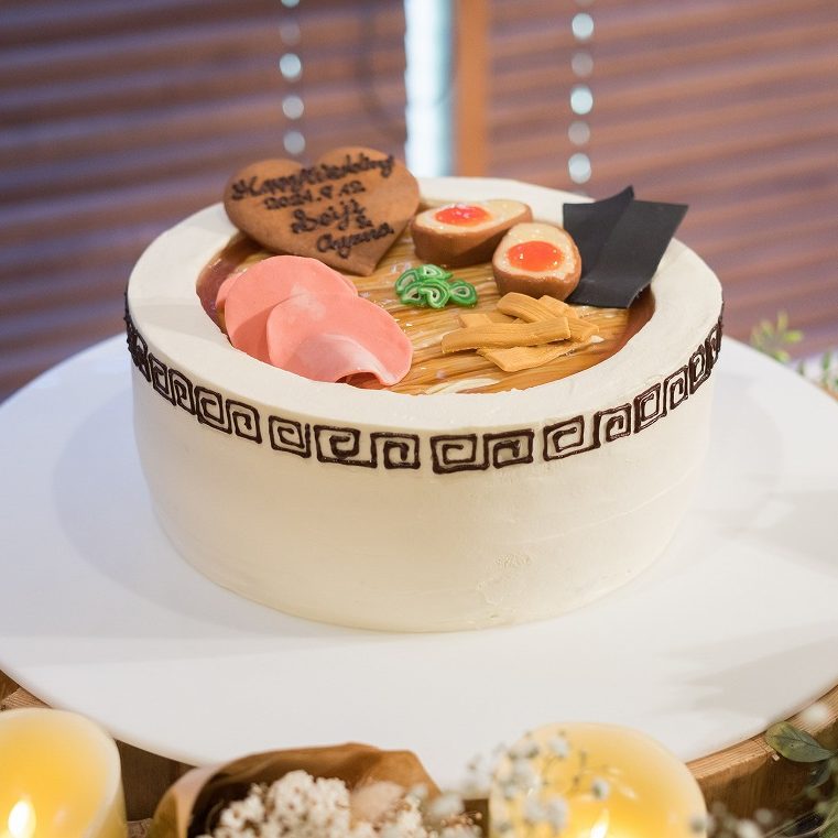 当日を迎えるまではコロナ禍ということもあり不安はありましたが、まずはそれを忘れるくらい会場の装飾やブーケ、ラーメンケーキなにもかも全てが素敵で時間を忘れるくらいあっという間に時間が過ぎていきました。