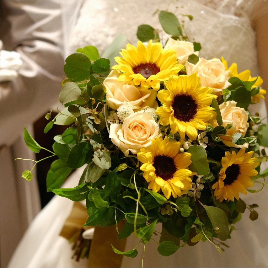 また、私たちの子供の名前にちなみ席次表やブーケ、会場装飾にヒマワリを使用しました。明るく温かい雰囲気にすることができました。
