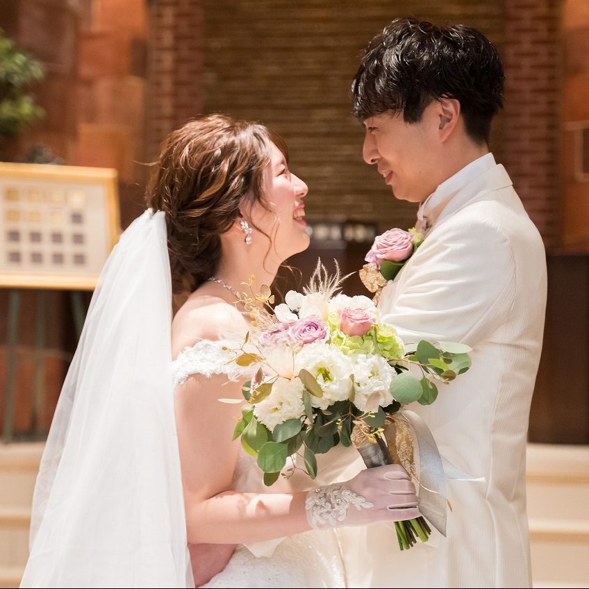 「体感時間3分ですよ、だから一瞬一瞬を噛み締めてください」とプランナーさんに言われた時は、絶対そんなはずないと思っていたのですが本当に楽しく素敵な時間であっという間に式が終わってしまいました。何よりゲストの方が終始ニコニコしてくれていたのがとても嬉しかったです。コロナ禍で式を挙げるかたくさん悩みましたが、担当してくださった小久保さんが、どんな小さな悩みでも親身になって相談に乗ってくださり、不安なく式を終えることができました。ありがとうございました。