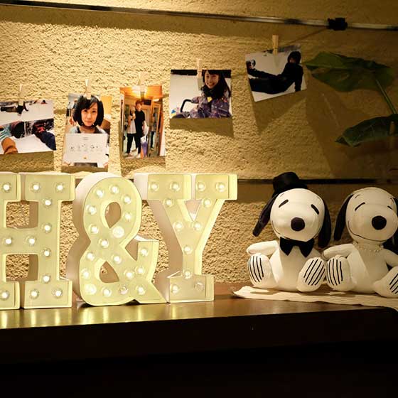 こだわったポイントは、自分達はもちろんゲストのみなさんにも楽しんでもらえるようにしたことです。ウェルカムスペースには手作りしたウェルカムボードや前撮りアイテム2人の思い出の写真や物をたくさん飾り、入り口から楽しんでもらえるようにしました。