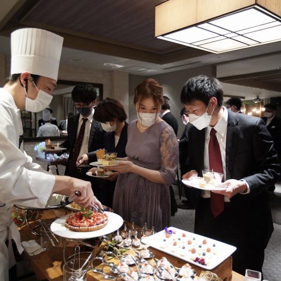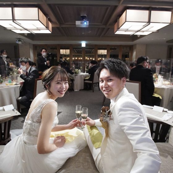 感染対策をばっちり行いながらの挙式・披露宴。当初よりも人数が少なくなり、