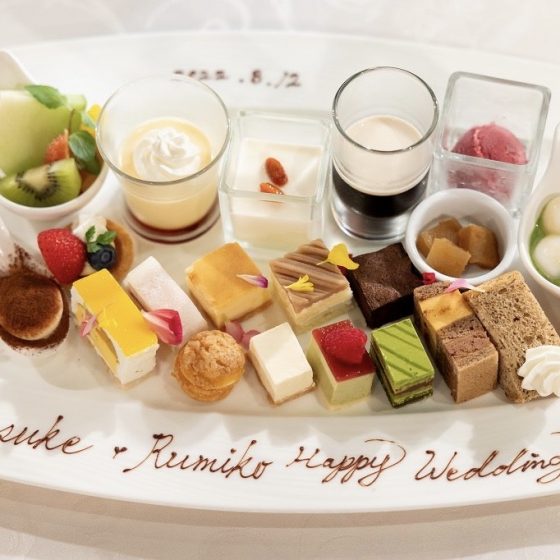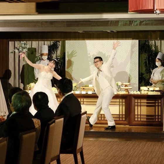 デザートと一緒に新郎新婦でサプライズ登場をし、会場が盛り上がりました!