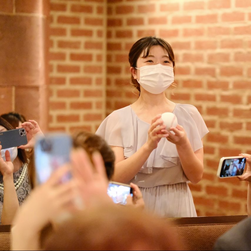 挙式は最初、緊張していましたが、野球の演出の時から会場も笑いに包まれ、