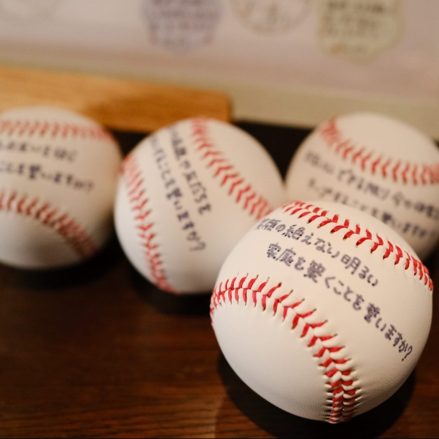 野球ボールに誓いの言葉を書き、ゲストさんに投げてもらったり、