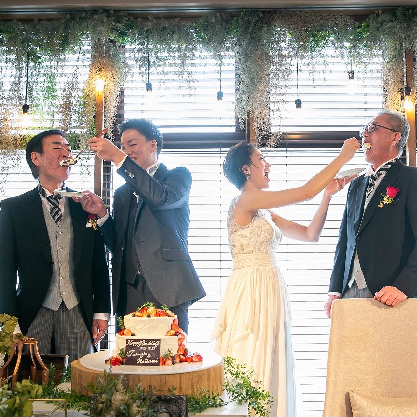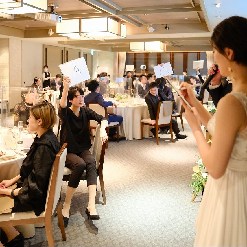 また、お互いの友人たちを交え、みんなでワイワイ楽しむ結婚式にしたかったため。