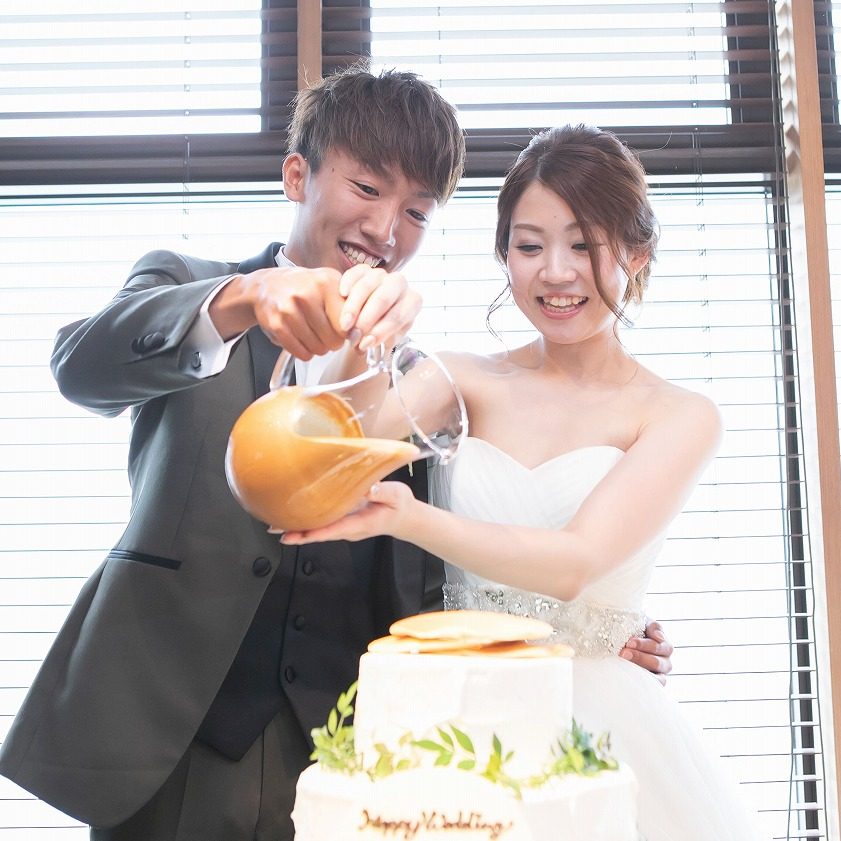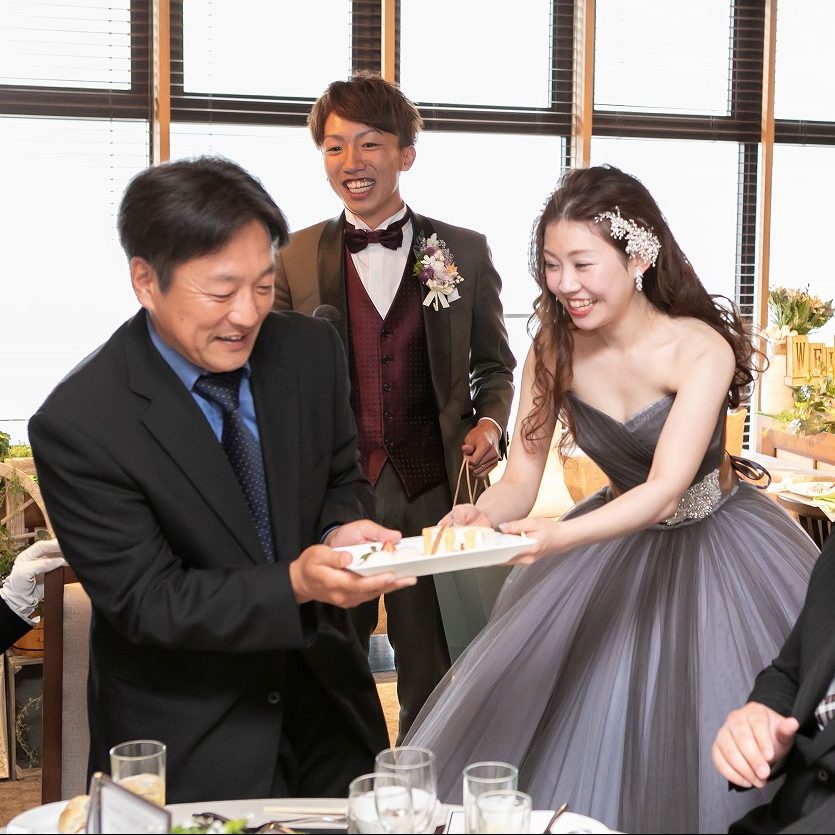年齢も世代も全てが違うから、全員に喜んでもらいたい、料理のおもてなしが1番ではないかそう考えていました。なのでお腹が空いてるお昼の時間に、美味しい料理をお腹いっぱい食べてもらいたいと考え披露宴の開始時間がお昼にかかる第1部の方を選びそこは絶対のこだわりでした。