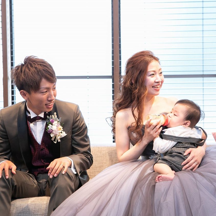7ヶ月の子連れ婚だったので、1日ぐずらないでいれるか不安でしかたありませんでしたが、普段と違う雰囲気に泣いてる時間の方がやっぱり多かったです!笑