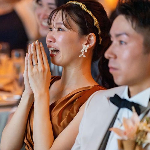 もっと涙涙の結婚式になると思ってましたが、会場がアットホームな雰囲気だったのもあり、笑いあり涙ありの温かい結婚式になりました。ゲストとの距離も近かったため、そこまで緊張することもなく、とっても楽しい1日でした。